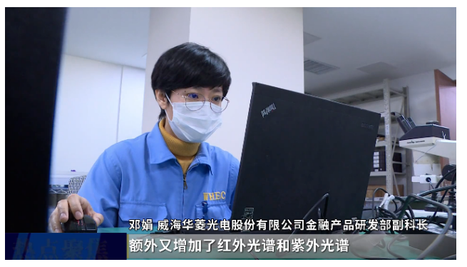 威海華菱光電股份有限公司金融產品研發部副科長鄧娟:“我們這個產品不僅能采用紅、綠、藍三種顏色的光,額外又增加了紅外光